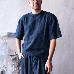 Linen T Shirt With Side Slits Men’s Basic