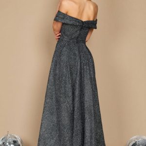 You’ll want to wear this elegant formal dress over and over again because of its timeless. straightforward design. The off-shoulder sleeves. sweetheart neckline. side pockets . and high front slit on this dress are all hallmark features. available in sizes 4 to 24 and in the colors mauve and black. Perfect for formal gatherings like weddings and parties. This dress. which is made of a glittery. shimmering material. will shine brilliantly at any event.