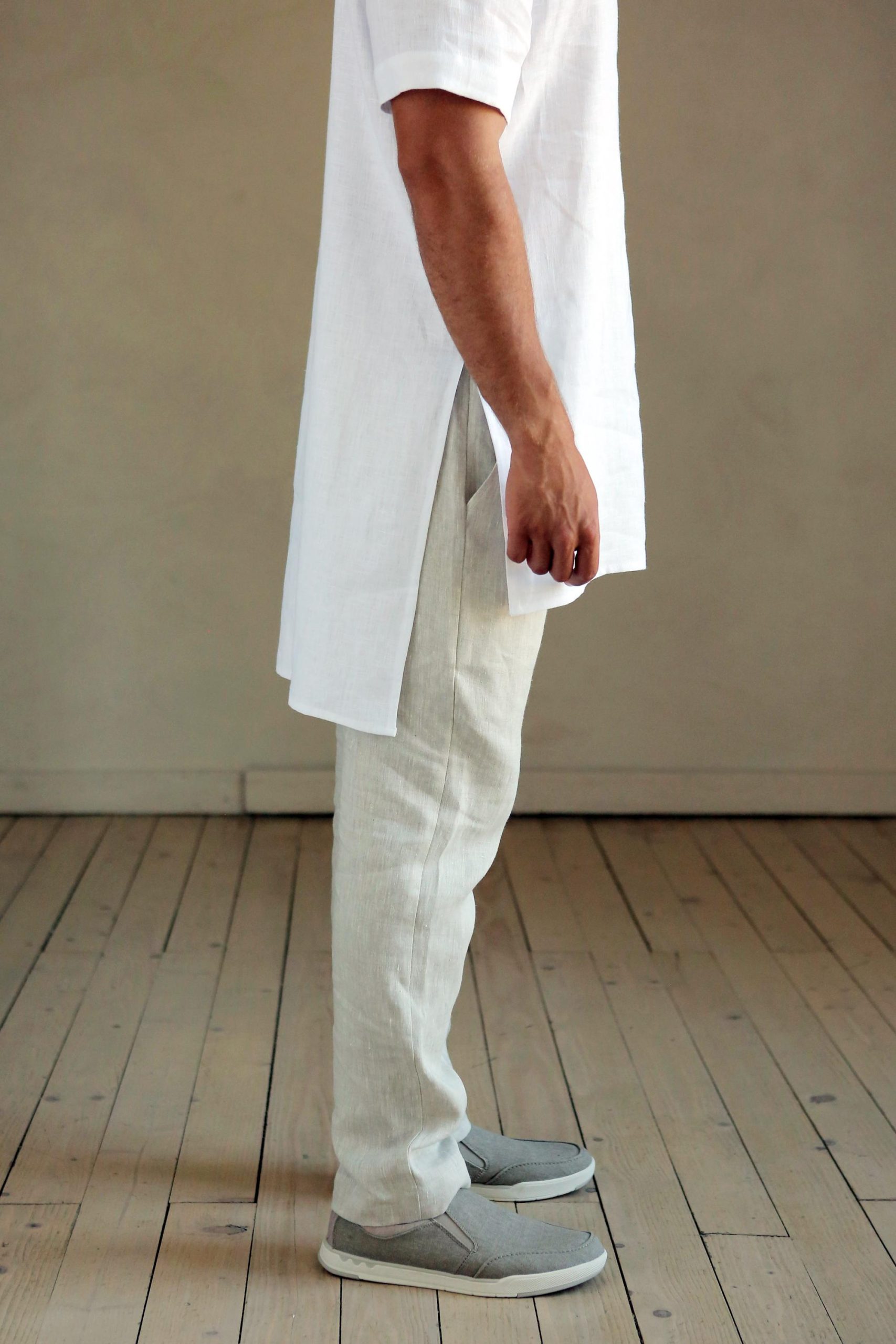 Men’s linen t-shirt with slits.